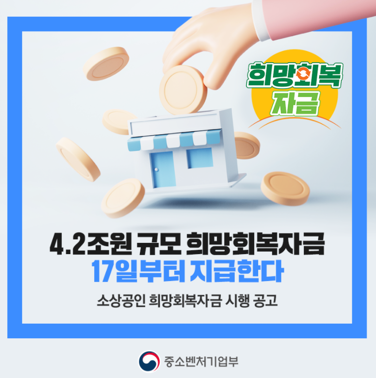 희망회복자금 : 소상공인 희망회복자금 총정리 (대상, 시기, 금액, 신청)손실보상법 : (서울=연합뉴스) 박상돈 기자 = 5차 재난지원금 중 하나인 소상공인 '희망회복자금'이 내달 17일부터 지급된다.. 우선 이번 회의에서는 소상공인을 대상으로 한 4번째 재난지원금인 희망회복자금 지원이 논의됐다. 4조원대 희망회복자금 풀린다…정부, 소상공인에 17일부터 지급. 소상공인 희망회복자금 신청 대상 소상공인 희망회복자금 신청방법 조회 홈페이지 사이트 코로나 5차 재난지원금 코로나 소상공인 5차지원금 소상공인 희망 회복자 신청기간 지급금액 5차 재난지원금 카드. 코로나19 방역 조치로 피해를 입은 소상공인을 대상으로 한 5차 재난지원금, '희망회복자금'이 오는 17일부터 지급을 시작합니다. 4조2천억 규모의 5차 재난지원금(희망회복자금)이 17일 오전 8시부터 지급된다.